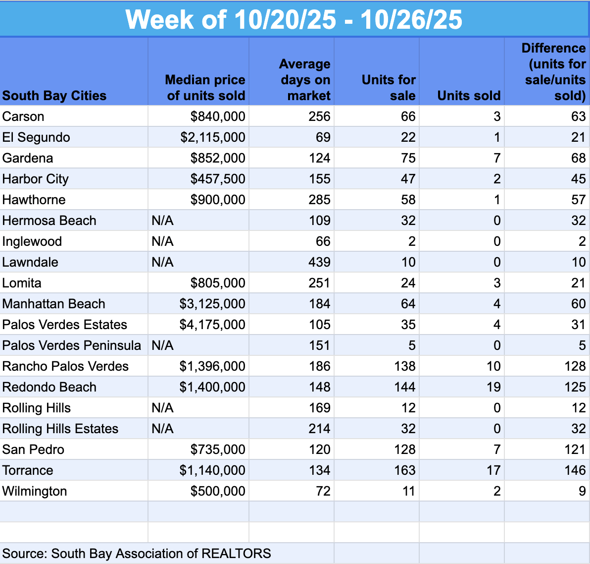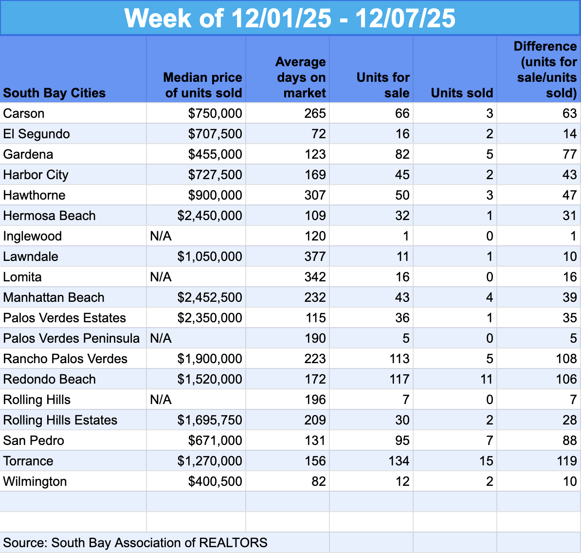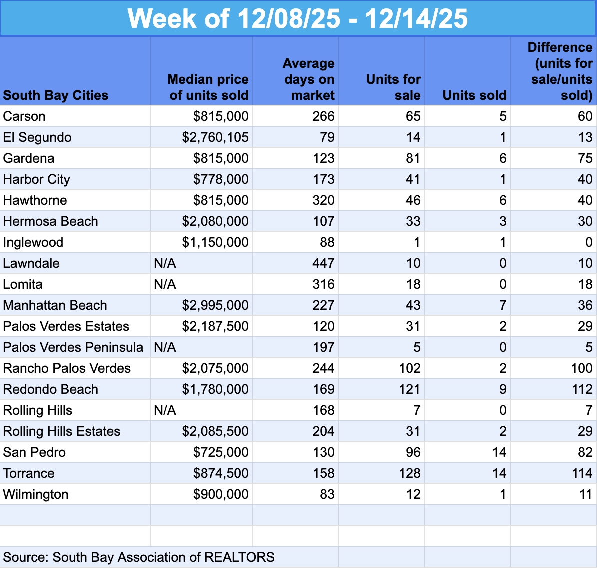 South Bay Market Snapshots